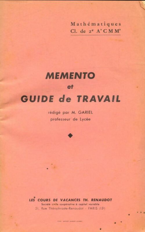 Mathématiques Seconde A', C, M, M' : Memento et guide de travail